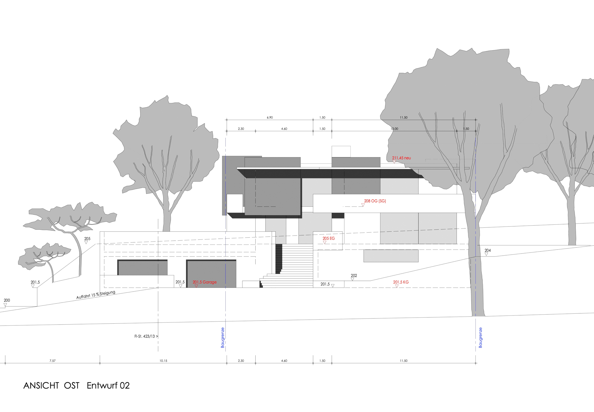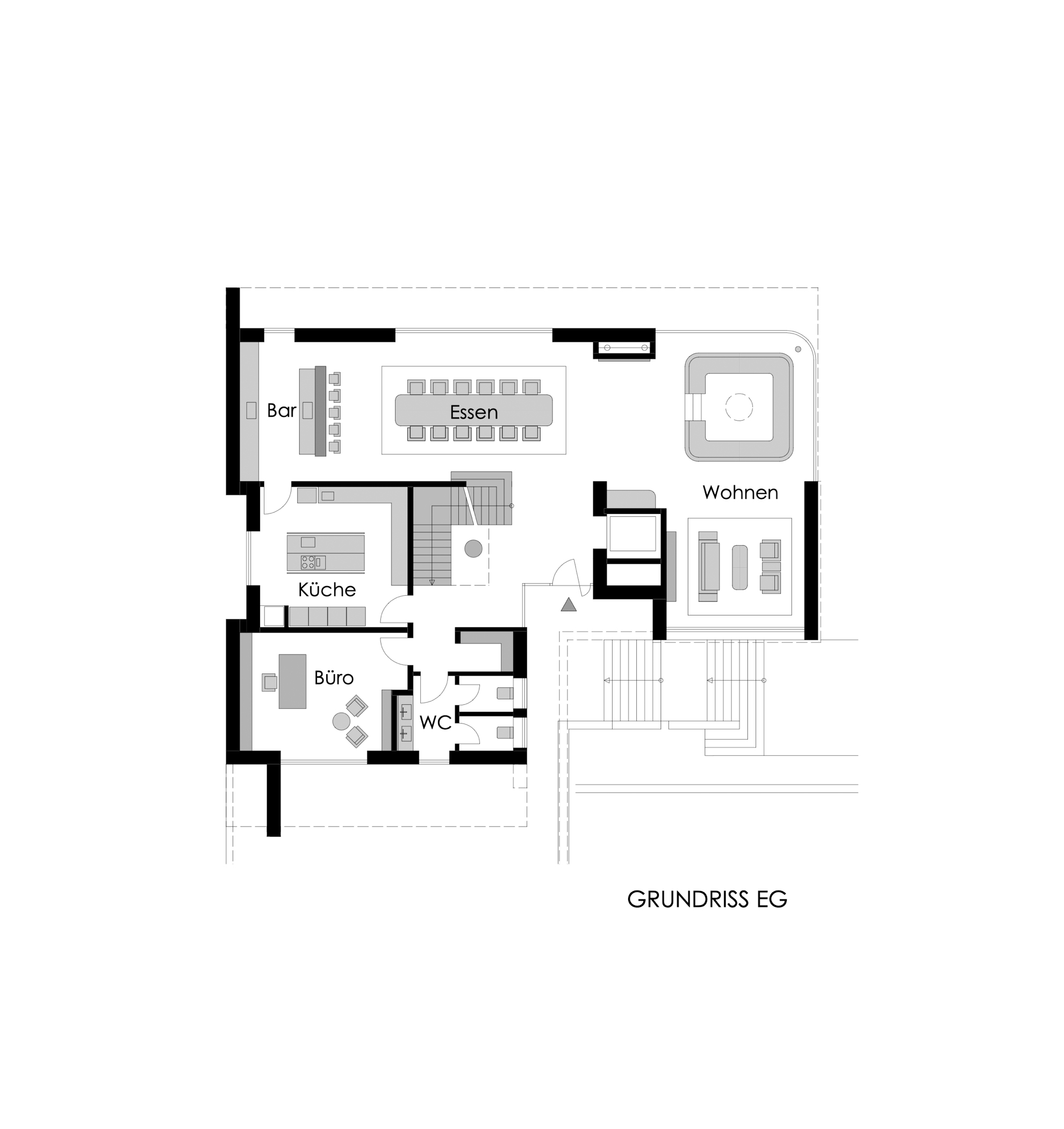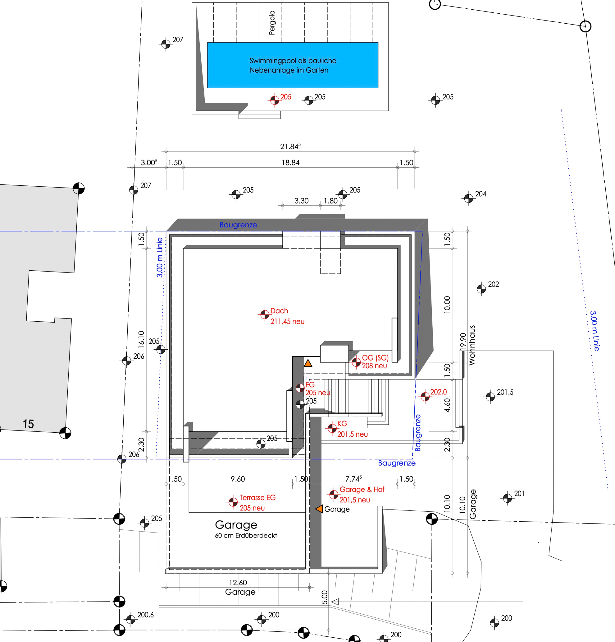 An der Schnittstelle zwischen Wald und Straße gelegen, eröffnet sich die Möglichkeit, ein modernes Wohnhaus zu entwickeln, das den Bogen von Exklusivität bis hin zur Nachhaltigkeit spannt. Das Wohnhaus verfügt über eine Wohnebene, die sich zum Pool hin öffnet, fünf Schlafzimmer, eine Einliegerwohnung sowie ein eigenes Heimkino. Abgerundet wird die Liegenschaft durch eine Garage für vier Fahrzeuge. Den erhöhten energetischen Anforderungen wird durch eine Vierfachverglasung sowie massive Außenwände aus Infraleichtbeton entsprochen.